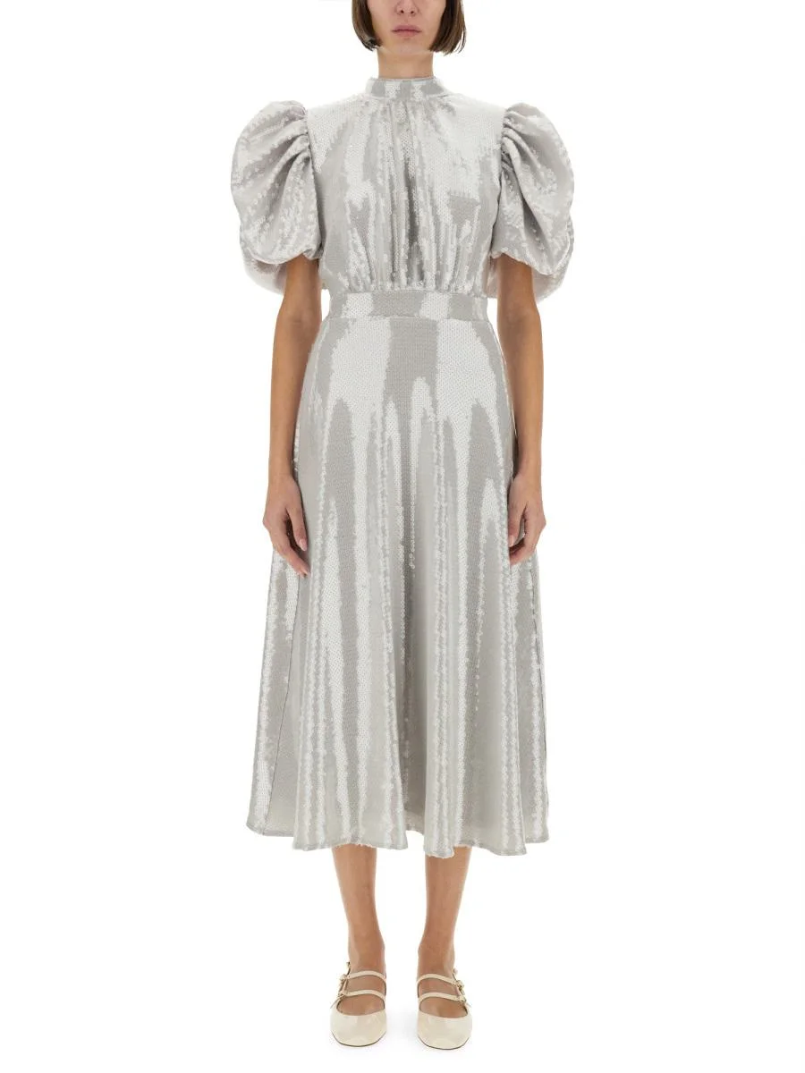 sequined puff-sleeve midi dress