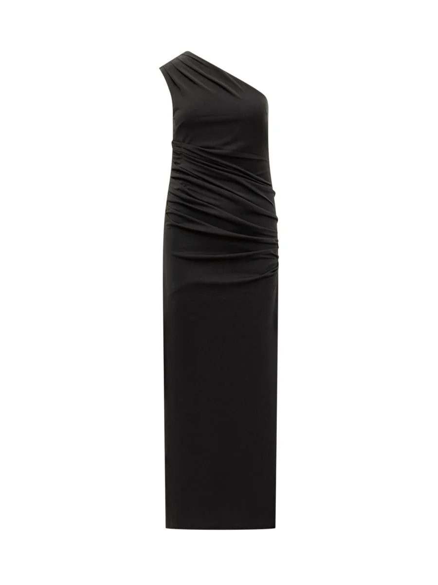 Rotate Birger Christensen Rotate Long Dress Black One-Shoulder Draped