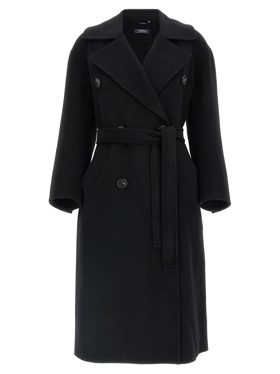 'Dalila' long coat in double drap of pure wool sewn by hand, double-breasted style with front button closure, lapel collar, pockets, long sleeves with dropped shoulders, back split, unlined, removable belt Gender: Women Material: 70% VIRGIN WOOL 30% CASHMERE Color: Black Made in: Imported Product ID: 2529016101600006 *Import tax/duty will be calculated at checkout (If applicable)
