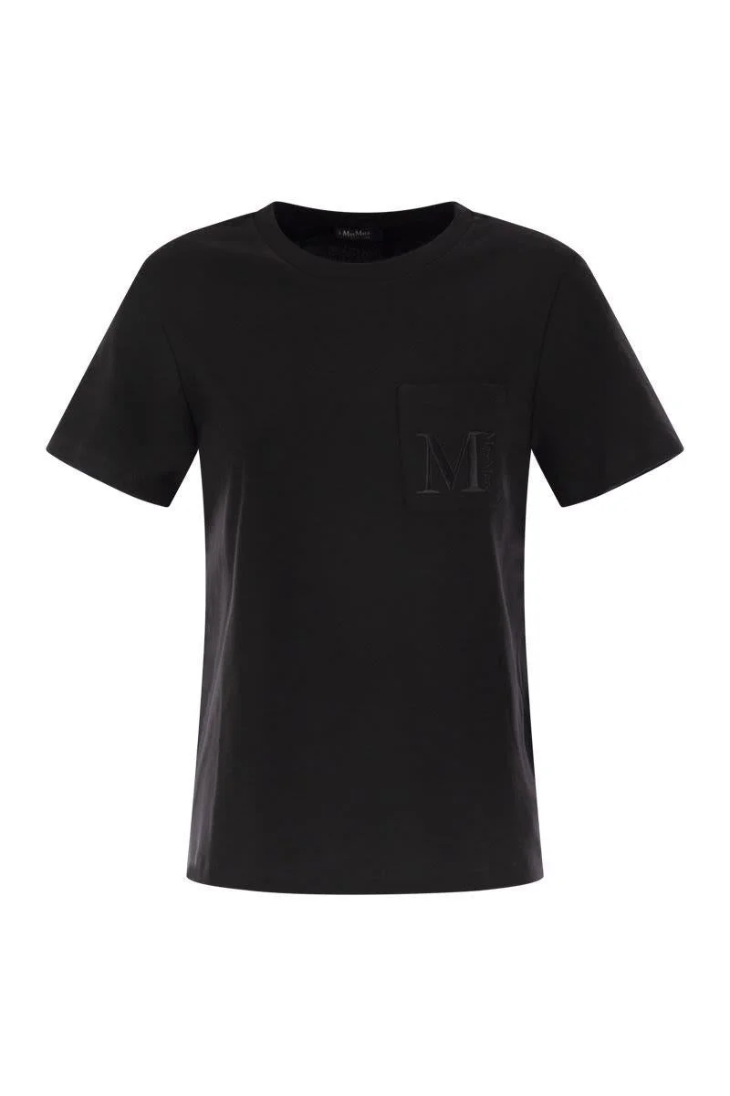 Short-sleeved crew-neck T-shirt made of soft cotton jersey. Regular fit straight fit model, finished with breast pocket, decorated with tone-on-tone embroidered M monogram detail. - Chest pocket - Crew neck - Short sleeves DESIGNER ID: 2529976011600 009 Gender: Women Material: 100% COTTON Color: Black Made in: Italy Product ID: 2529976011600 009 *Import tax/duty will be calculated at checkout (If applicable)