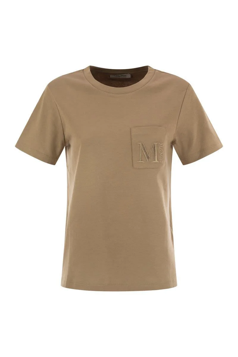 Short-sleeved crew-neck T-shirt made of soft cotton jersey. Regular fit straight fit model, finished with breast pocket, decorated with tone-on-tone embroidered M monogram detail. - Chest pocket - Crew neck - Short sleeves DESIGNER ID: 2529976011600 006 Gender: Women Material: 100% COTTON Color: Brown Made in: Italy Product ID: 2529976011600 006 *Import tax/duty will be calculated at checkout (If applicable)