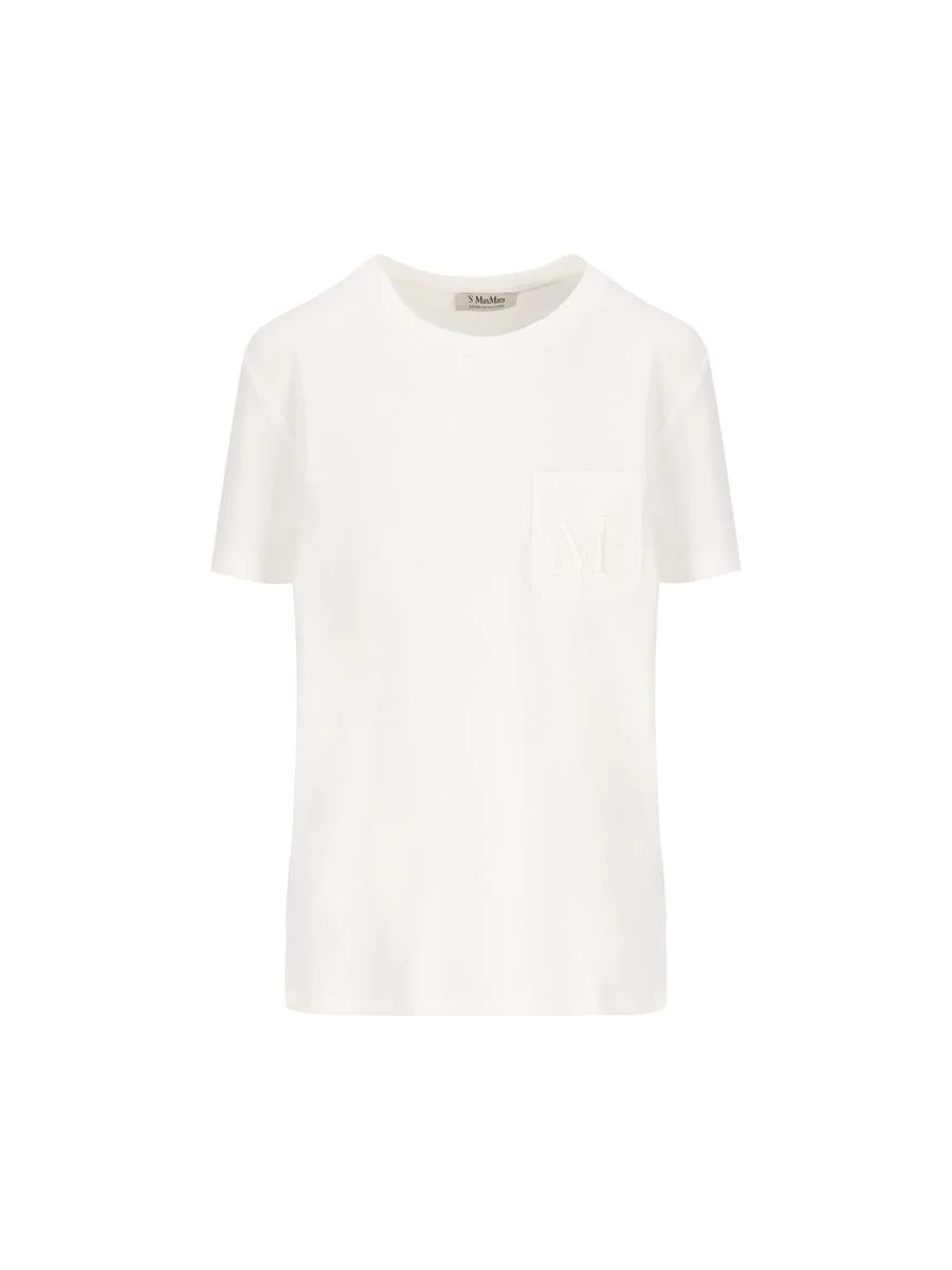 Max Mara T-shirt in pure white cotton with a painted-effect placed print. An essential yet refined garment, ideal for adding an artistic and modern touch to casual seasonal looks. - Material: 100% cotton - Color: white - Chest pocket with M embroidery - Hems finished with double-needle stitching - Minimal design with graphic detail that characterizes the garment - Item code: 2529976011600001 Gender: Women Material: FABRIC 100% COTTON Color: WHITE Made in: Imported Product ID: 2529976011600001_AI25 *Import tax/duty will be calculated at checkout (If applicable)