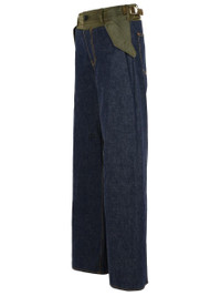 Made of denim with green nylon inserts, button closure and hidden zipper, waist with loops, side pockets with flap and magnetic button, back patch pockets, contrasting decorative stitching, side adjustment straps, wide leg Gender: Women Material: 100% COTTON Color: BLUE Made in: Imported Product ID: 25-07965489 *Import tax/duty will be calculated at checkout (If applicable)