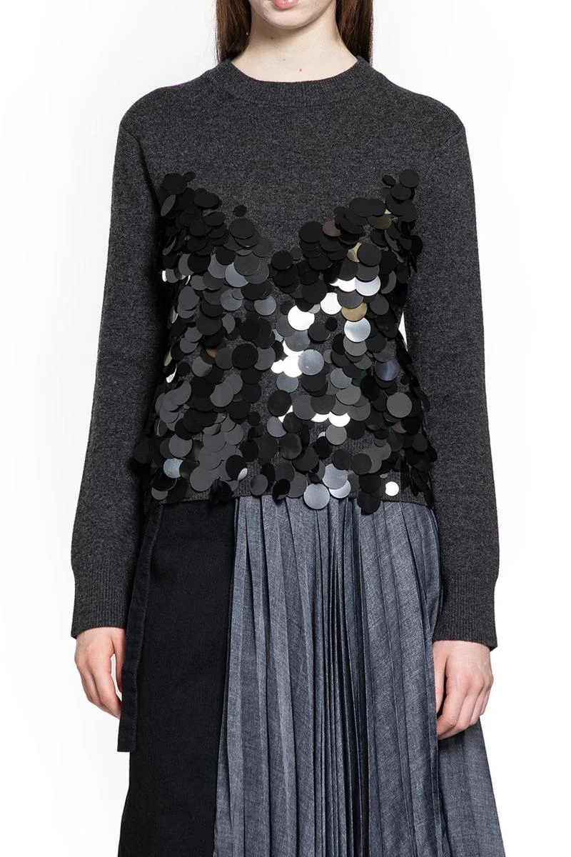 Sequin Embroidery Wool Knit Pullover in Gray/Black