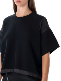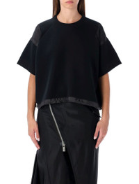 Sacai’s t-shirt redefines an essential piece with functional details and a contemporary silhouette. Crafted from technical cotton, it features an oversized fit with wide short sleeves and contrasting shoulder inserts. The adjustable drawstring hem enhances its versatility, allowing the shape to be styled in different ways, from casual everyday looks to bold urban outfits. Technical cotton with contrast inserts Oversized fit Adjustable drawstring hem Wide short sleeves Ribbed crew neckline Utility-inspired functional details Alessandra is 1,75 m and wears size 2 Gender: Women Material: 62% COTTON 38% POLYESTER Color: Black Made in: Imported Product ID: 25A2508174#002 *Import tax/duty will be calculated at checkout (If applicable)