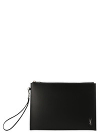 Saint Laurent's clutch crafted in black shiny leather. It features silver-tone hardware, zip fastening and removable wrist strap. Black canvas-lined interior with two flat pockets and six card slots. The design is completed by the unmistakable metal interlocking YSL signature. Gender: Men Material: 100% CALF SKIN Color: BLACK Made in: IT Product ID: 6838271JB0E1000 *Import tax/duty will be calculated at checkout (If applicable)