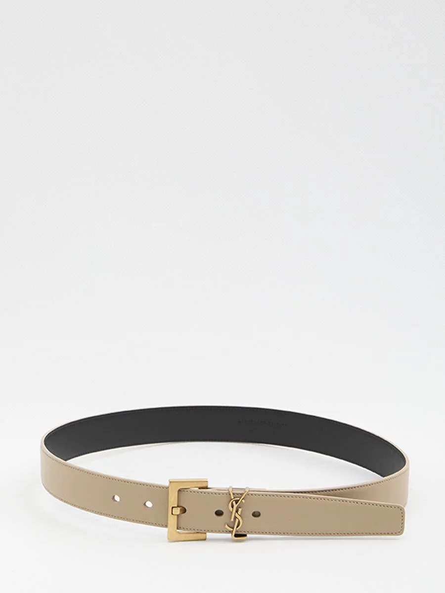 Belt in dark beige leather. Features bronze-toned metal hardware and an adjustable buckle closure. Any imperfections in the leather are not to be considered manufacturing defects but a characteristic of the material. Width: 3 cm Size nationality: EU Gender: Women Material: 100% CALFSKIN; DETAILS: BRASS Color: Beige Made in: Italy Product ID: 7554473 634437 BOO0W 2721 *Import tax/duty will be calculated at checkout (If applicable)