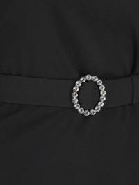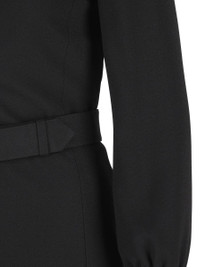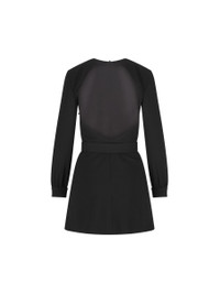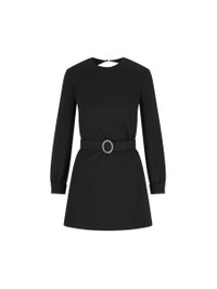 Essential lines and sophisticated sensuality define this mini dress by Saint Laurent. Made of fluid sable, it stands out for its minimalist design enhanced by a deep back neckline. An elegant and bold garment designed for special evenings and occasions when every detail counts. - Material: 53% acetate, 47% viscose - Color: black - Viscose lining - Button closure on back of neck - Concealed zipper, hook and eye closure on back of skirt - Round neckline - Adjustable and detachable belt with oval buckle set with crystals - Padded shoulders - Made in Italy - Item number: 819619Y012W1000 Gender: Women Color: Black Made in: Italy Product ID: 819619Y012W1000_AI25 *Import tax/duty will be calculated at checkout (If applicable)