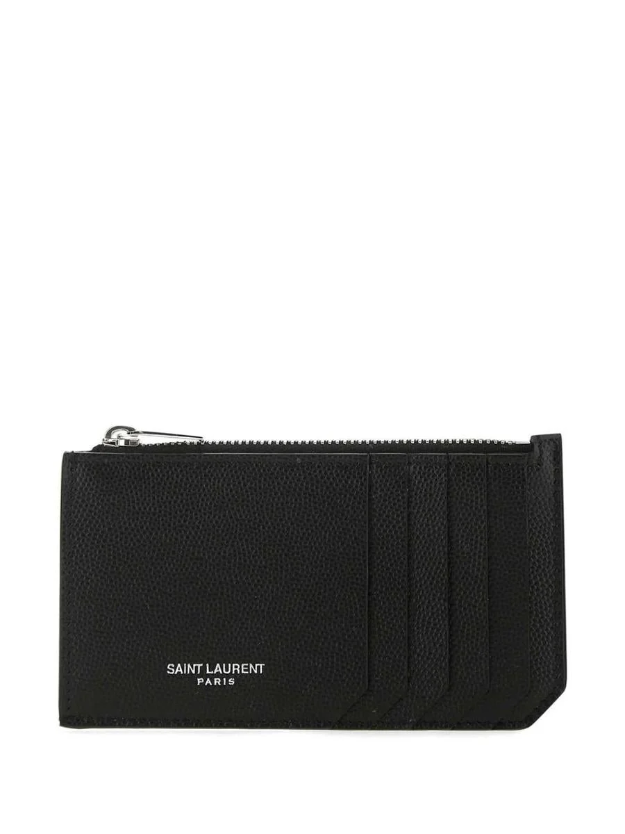 SAINT LAURENT PARIS FRAGMENTS ZIPPED CARD CASE IN GRAIN DE POUDRE LEATHER