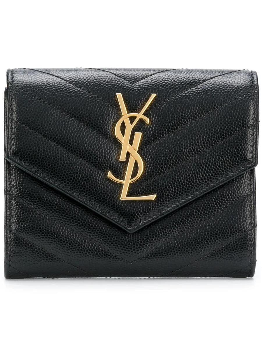 Saint Laurent Grain De Poudre Leather Cassandre Matelassé Compact Tri Fold Wallet Accessories