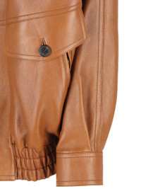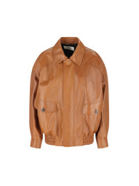 Saint Laurent's lambskin bomber jacket expresses decisive elegance with a contemporary character. The sporty silhouette is elevated by the softness of the fine leather, while the ribbed details and zipper closure confirm the iconic style of the maison. A versatile and sophisticated garment, perfect for completing casual chic and urban looks. - Material: 100% lambskin leather - Color: brown - Cotton and viscose lining - Zip and windproof flap closure with snap buttons - Two flat button patch pockets and two welt pockets on front - Pointed collar - Made in Italy - Item code: 842948YCSK22080 Gender: Women Color: MARRON SENOIS Made in: Italy Product ID: 842948YCSK22080_AI25 *Import tax/duty will be calculated at checkout (If applicable)
