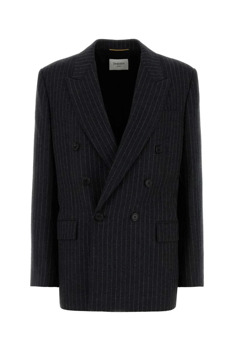 Oversized double-breasted pinstriped wool-flannel blazer Dark gray