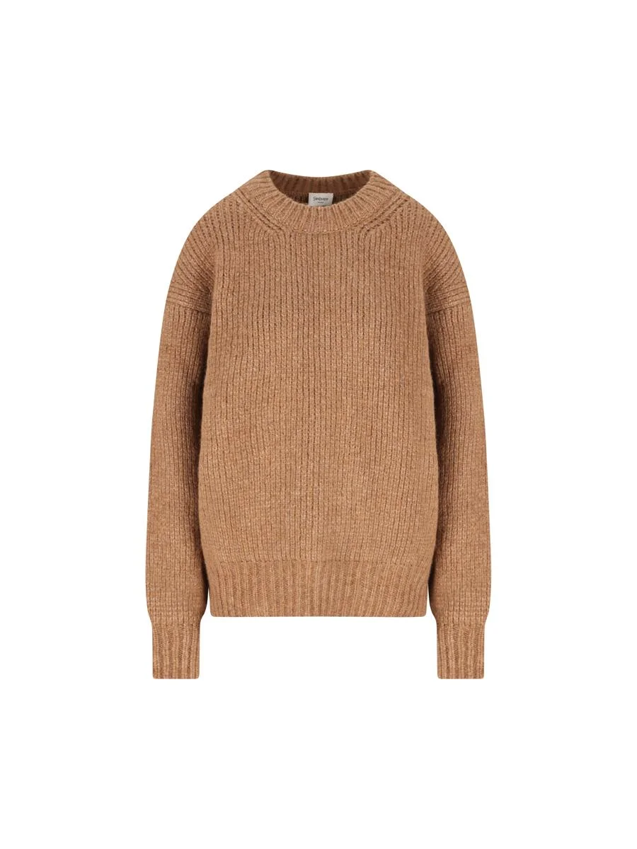 Saint Laurent's thick knit pullover expresses minimal, textural elegance. Made of pure wool, it features a marked ribbed knit that lends volume and definition to the silhouette. The essential design, with a classic crew neck and long sleeves, lends itself to versatile combinations for a sophisticated and relaxed style typical of the Maison. - Material: 60% alpaca wool, 22% polyamide, 10% wool - Color: brown - Round neckline - Ribbed trim - Made in Italy - Item code: 824228Y77BH2573 Gender: Women Color: BROWN Made in: Italy Product ID: 824228Y77BH2573_AI25 *Import tax/duty will be calculated at checkout (If applicable)