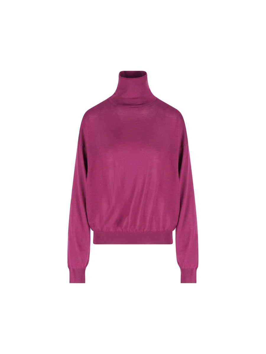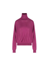 The Saint Laurent turtleneck sweater is an essential garment with timeless appeal. Made of pure wool, it offers warmth and comfort with a fine, compact texture. The clean line and brique color give a sophisticated elegance, perfect for refined and contemporary looks. - Material: 100% wool - Color: pink - High collar - Made in Italy - Item code: 850331Y76GM5102 Gender: Women Color: VIOLINE Made in: Italy Product ID: 850331Y76GM5102_AI25 *Import tax/duty will be calculated at checkout (If applicable)