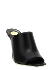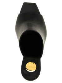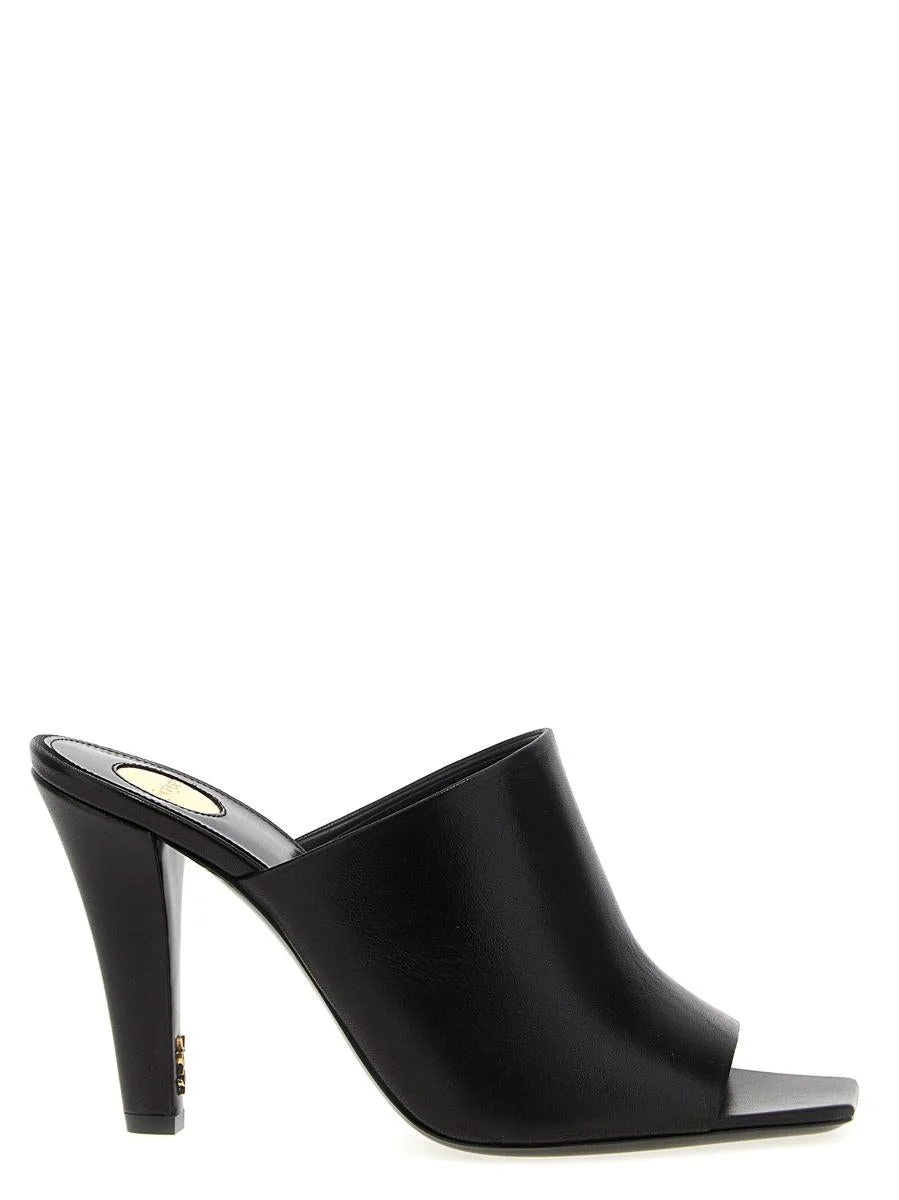 'Jill' leather mules, peep-toe model with square toe, wide heel with Cassandre metal logo applique, leather sole Gender: Women Material: 100% LEATHER Color: Black Made in: Italy Product ID: 818037AADGZ1000 *Import tax/duty will be calculated at checkout (If applicable)