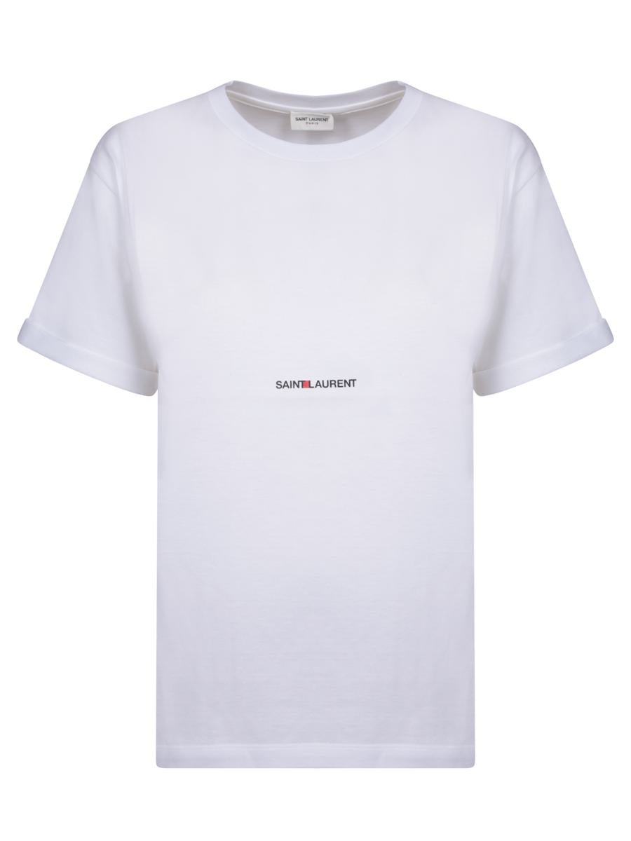 Cotton t-shirt by Saint Laurent. Short sleeves. Roundneck. Contrasting lettering logo to the front Gender: Women Material: 100% COTTON Color: WHITE Made in: Imported Product ID: 460876 YB2DQ 9000 *Import tax/duty will be calculated at checkout (If applicable)