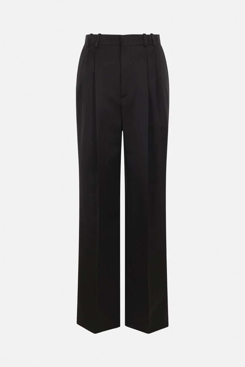 Saint Laurent's straight-leg trousers crafted in black silk satin. Featuring hook / button / zip closure, belt loops, multiple pockets, front double pleat, central pressed crease and unlined interior. Gender: Women Material: T SILK 100%;FP COTTON 97%;FP ELASTAN 3% Color: Black Made in: IT Product ID: 803599Y013G1000 *Import tax/duty will be calculated at checkout (If applicable)