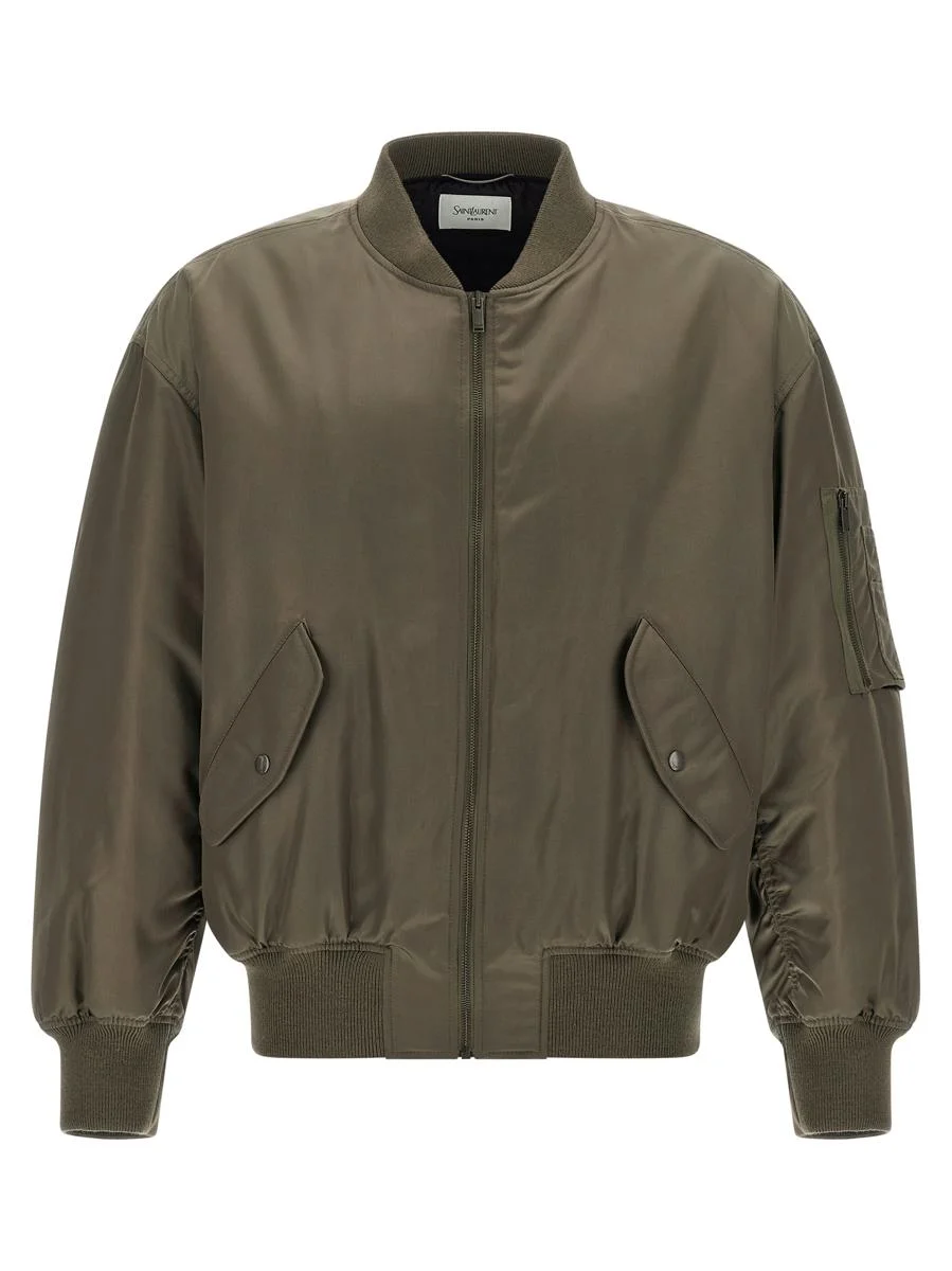 Water-repellent nylon serge bomber jacket with ribbed stretch knit details, front zip closure, pockets, long sleeves with cuffs and dropped shoulder, viscose and cotton blend lining Gender: Men Material: 100% POLYAMIDE Color: GREEN Made in: Italy Product ID: 838713YZ9BV2879 *Import tax/duty will be calculated at checkout (If applicable)