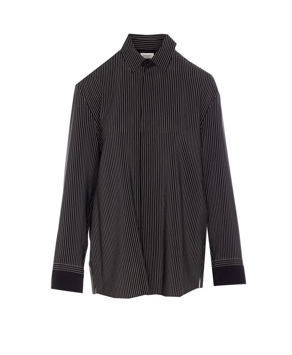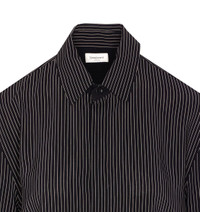 Saint Laurent Black And White Striped Shirt With Frontal Buttons Closure, Regular Collar, Long Sleeves, Button On Cuffs, Print Logo On Cuffs, EU SIZE (FR) Gender: Women Material: 100% SILK Color: Black Made in: IT Product ID: 823656Y4K761095 *Import tax/duty will be calculated at checkout (If applicable)