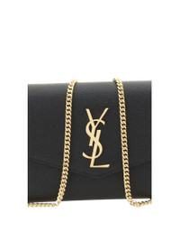 RED LEATHER CHAIN WALLET FROM SAINT LAURENT FEATURING MAGNETIC BUTTON CLOSURE, REMOVABLE CHAIN SHOULDER STRAP, GOLD-TONE EMBOSSED LOGO, INTERIOR COMPARTMENT WITH REMOVABLE CARD HOLDER. UNI Height: 12 cm, Length: 19 cm, Depth: 2 cm Gender: Women Material: CALF LEATHER BOS TAURUS Color: Black Made in: IT Product ID: 6077881GF0J_1000 *Import tax/duty will be calculated at checkout (If applicable)