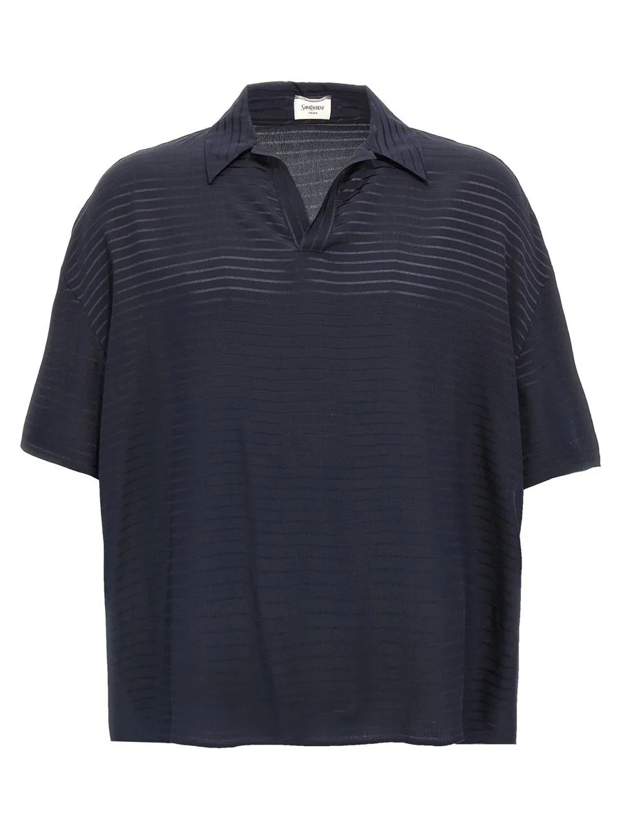 Light silk striped polo shirt, V-neck, collar, short sleeves with dropped shoulders Gender: Men Material: 100% SILK Color: BLUE Made in: Italy Product ID: 814801Y2G624102 *Import tax/duty will be calculated at checkout (If applicable)