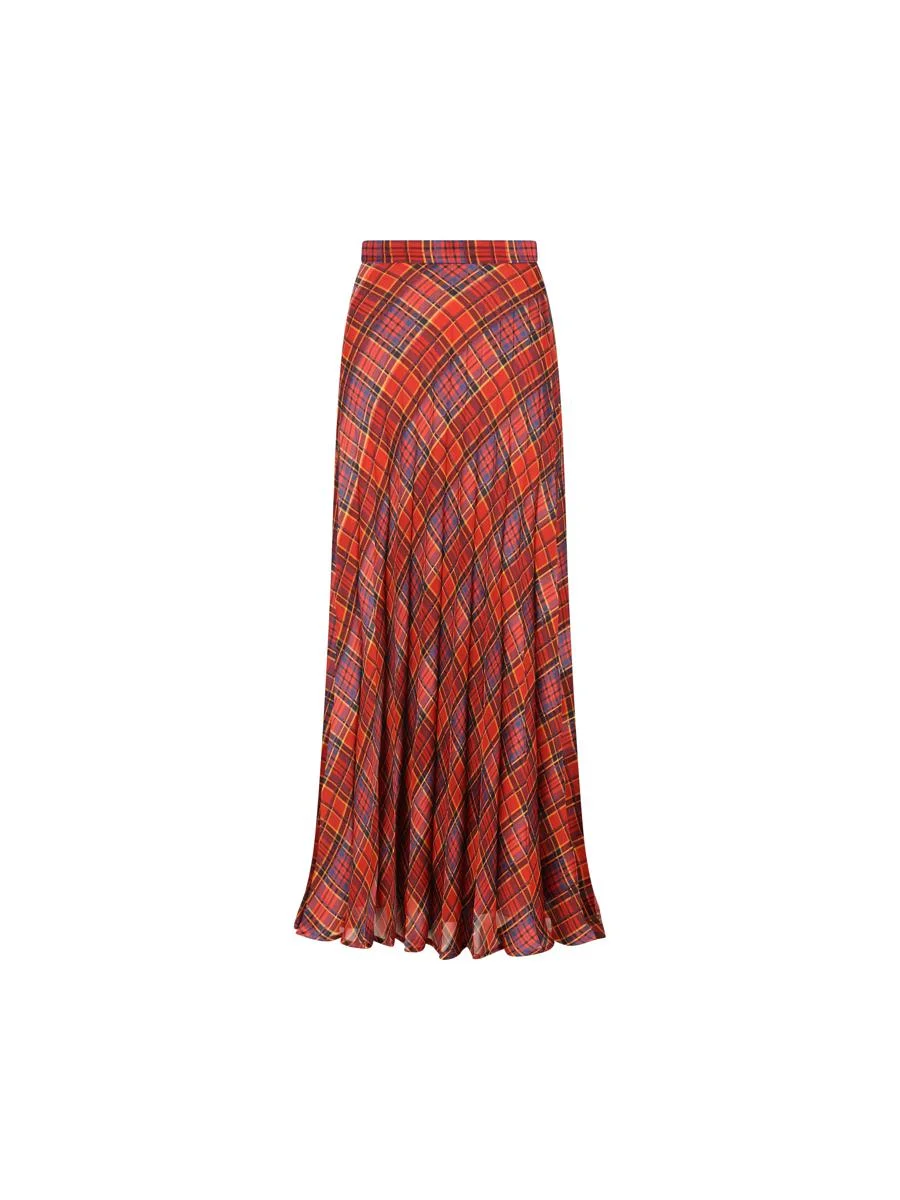 A dramatic garment with timeless appeal, this maxi skirt by Saint Laurent combines the lightness of silk with the boldness of a tartan pattern in vibrant shades of rouge, bleu and jaune. The bias cut enhances the movement of the pleats, creating a fluid and dynamic effect with every step. The silk lining ensures comfort and opacity, while the hidden side zipper and hook-and-eye closure maintains a flawless line. - Composition: 100% silk - Color: Rouge / Bleu / Jaune - Silk lining - Details: Diagonal tartan pattern; Soft, semi-sheer pleat - Concealed side zipper and hook closure - Item code: 840529Y3J296813 Gender: Women Color: ROUGE BLEU JAUNE Made in: Italy Product ID: 840529Y3J296813_AI25 *Import tax/duty will be calculated at checkout (If applicable)