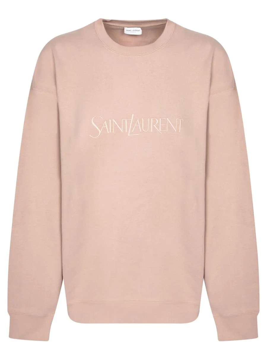 Long sleeve pink sweatshirt with embroidered Saint Laurent logo. Ribbed neckline and cuffs.. Exclusive light pink Saint Laurent sweatshirt, featuring a clean and minimalist design with an elegant tone-on-tone logo. Perfect for a casual yet sophisticated look Gender: Women Material: 100% COTTON Color: PINK Made in: Imported Product ID: 802001 Y36SW 9950 *Import tax/duty will be calculated at checkout (If applicable)
