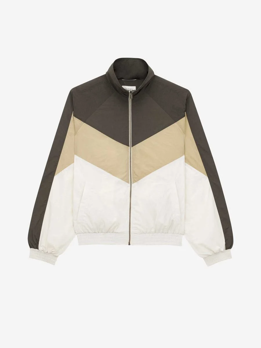 ZIP-UP BOMBER JACKET FEATURING A STAND COLLAR, POINTED YOKE, RAGLAN SLEEVES, AND SAINT LAURENT EMBROIDERY ON THE CHEST. - YOKE: POLYAMIDE LINING - BODICE: CUPRO AND COTTON TWILL LINING - FRONT ZIP CLOSURE - TWO WELT POCKETS AT THE FRONT - TWO INNER WELT POCKETS - STAND COLLAR - ELASTICIZED CUFFS - 100% POLYAMIDE - STYLE ID 820196YZ9AD2045 - MADE IN ITALY