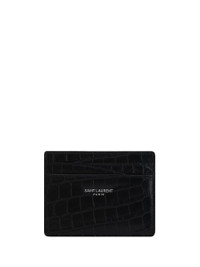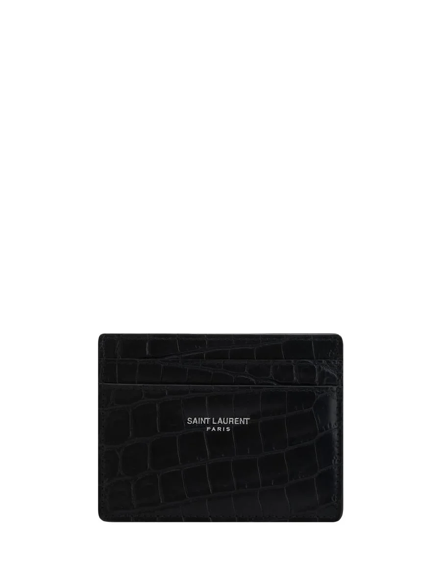 SAINT LAURENT PARIS CREDIT CARD CASE IN CROCODILE-EMBOSSED LEATHER