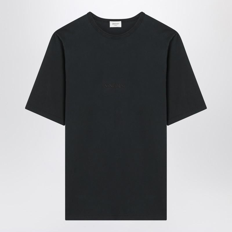 Saint Laurent black faded cotton T-shirt, featuring short sleeves, tone-on-tone logo embroidery on the chest, and ribbed crew neck. Gender: Men Material: Fabric I: 100% Cotton / Embroidery: 100% Polyester Color: Black Made in: Italy Product ID: 818535YBHD2/Q_YSL-1025 *Import tax/duty will be calculated at checkout (If applicable)