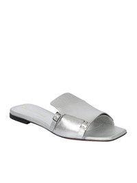 metallic slip on leather sandals