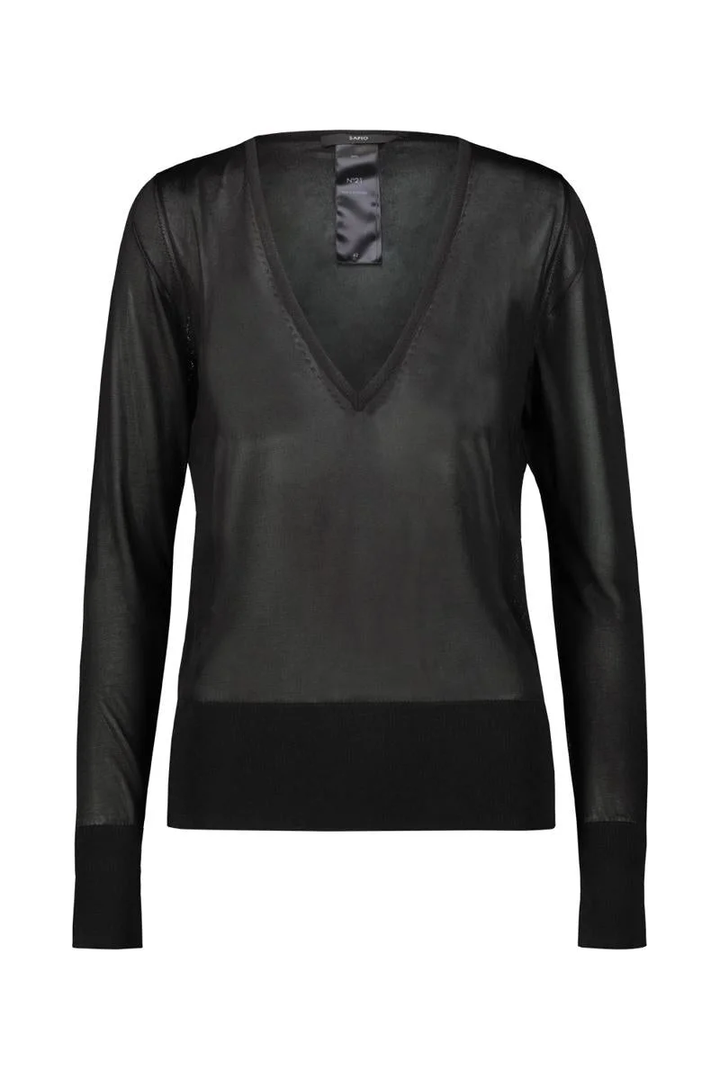 Sapio very thin sweater with v-neck in viscose. Gender: Women Material: VISCOSE | 100% VISCOSE Color: Black Made in: IT Product ID: 125DVI0101N21 *Import tax/duty will be calculated at checkout (If applicable)
