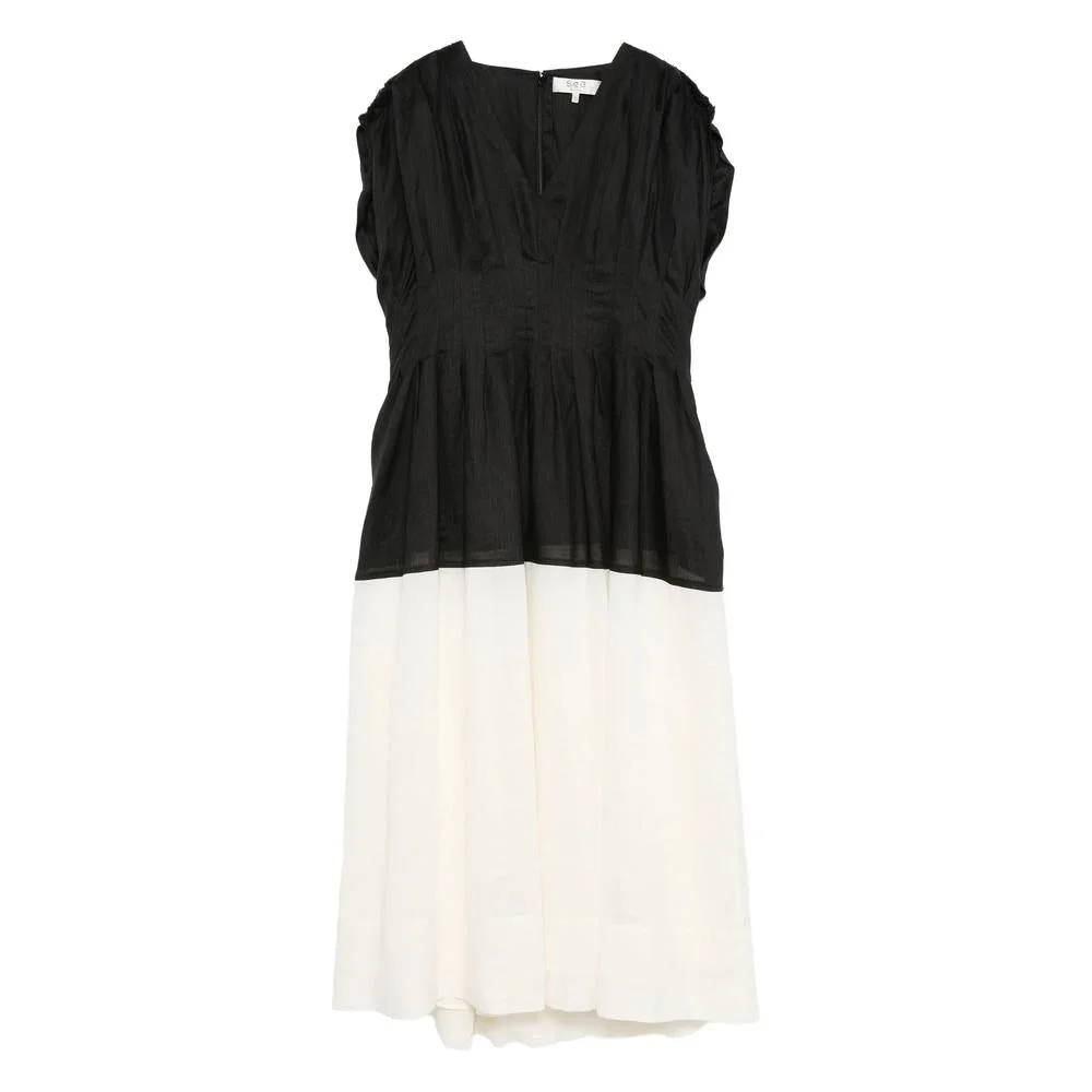 Black and off-white v-neck short sleeves pleated skirt Gender: Women Material: LINING COMPOSITION COTTON: 100.0%, OUTER COMPOSITION RAMIE: 100.0% Color: Multicolor Made in: Imported Product ID: PF25-080 MULTI *Import tax/duty will be calculated at checkout (If applicable)