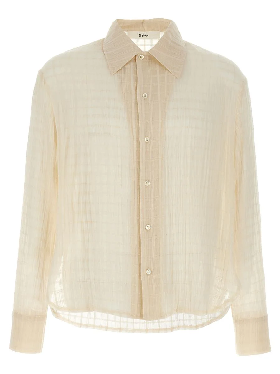 'Ignacio' shirt in light Italian plaid cotton with front button closure, long sleeves with cuffs, slightly reduced shoulder, side slits Gender: Men Material: 100% COTTON Color: Beige Made in: Latvia Product ID: MSS25IGNACIOCLOUDWHITECHECK *Import tax/duty will be calculated at checkout (If applicable)