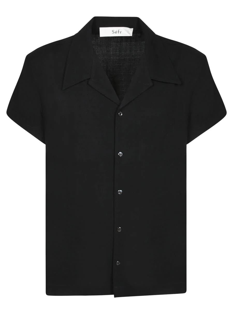 Short sleeve crepe shirt. Pointed collar. Button front closure. Elegance and minimalism define this SEFR Mael crepe shirt, featuring a clean design with a button closure and a sharp collar for a touch of sophistication. Gender: Men Color: Black Made in: Imported Product ID: MAEL BLACK *Import tax/duty will be calculated at checkout (If applicable)