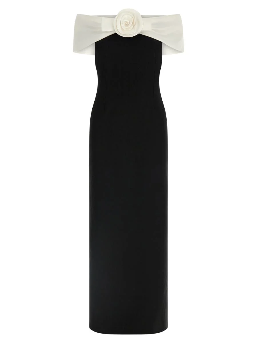 Self-Portrait 'Black Crêpe Flower Maxi' Dress
