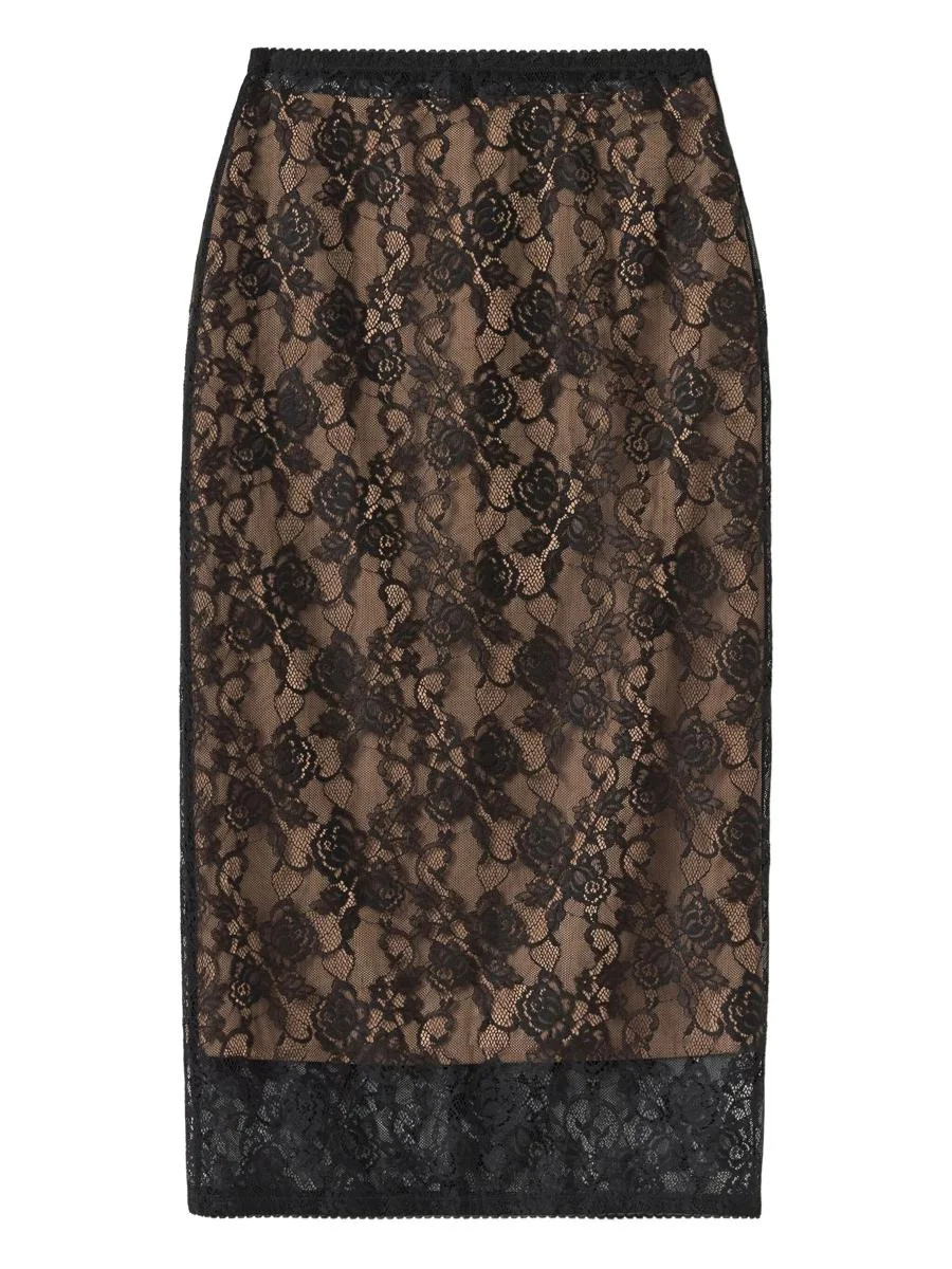 Black floral lace midi skirt Gender: Women Material: POLYESTER 89%, ELASTANE 11% Color: Black Made in: Imported Product ID: SC25003MSKB_65262_BLACK *Import tax/duty will be calculated at checkout (If applicable)