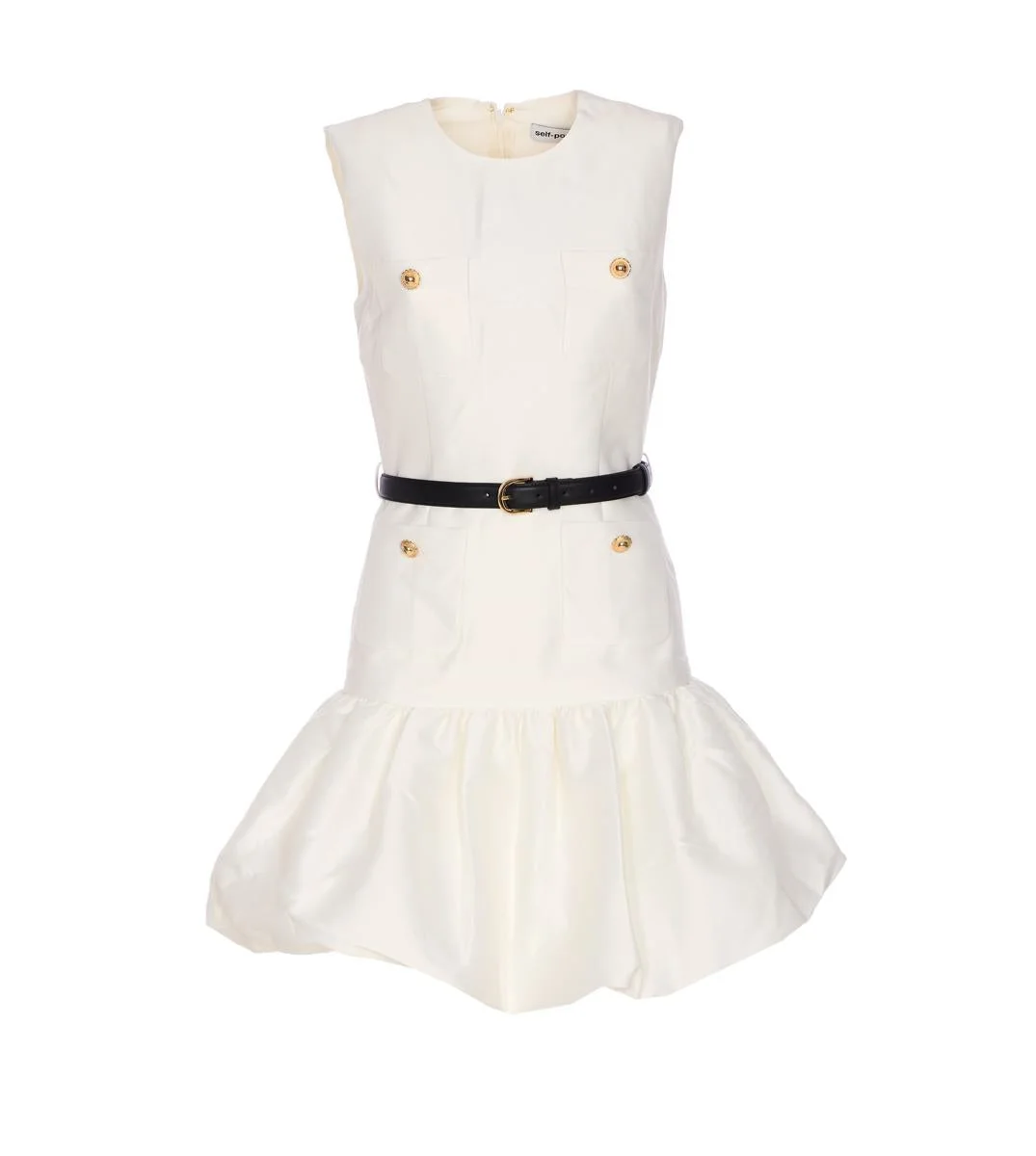 Self Portrait White Taffeta Mini Dress, Zip Closure On The Back, Sleeveless, Round Neckline, Pockets With Golden Buttons Details, Belt On Waist, UK SIZE Gender: Women Material: 100%POLYESTER, 100%LEATHER Color: WHITE Made in: Imported Product ID: 017SCREAM *Import tax/duty will be calculated at checkout (If applicable)