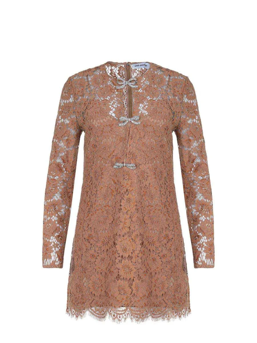 Tan Lace Bow Mini Dress