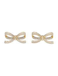 Delicate yet striking, the Self-Portrait Gold Crystal Bow Earrings bring a refined sparkle to every occasion. Crafted from gold-plated brass and adorned with crystal embellishments, their graceful bow design adds a feminine touch to both everyday outfits and eveningwear. With a secure stud fastening, these earrings perfectly balance elegance and modern charm. Gold-plated brass base Crystal embellishments Stud fastening Height: 1,75 cm Width: 3,1 cm Gender: Women Material: 100% COPPER Color: GOLD Made in: Imported Product ID: 25AAW25606EGD#GOLD *Import tax/duty will be calculated at checkout (If applicable)