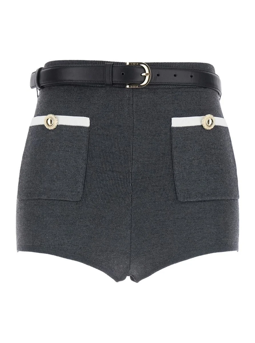 Shorts Grey Belt Front closure Two front patch pockets with button Straight hem Ribbed knit Wool Regular fit Gender: Women Color: GREY Made in: Imported Product ID: PF25046PGRGREY *Import tax/duty will be calculated at checkout (If applicable)