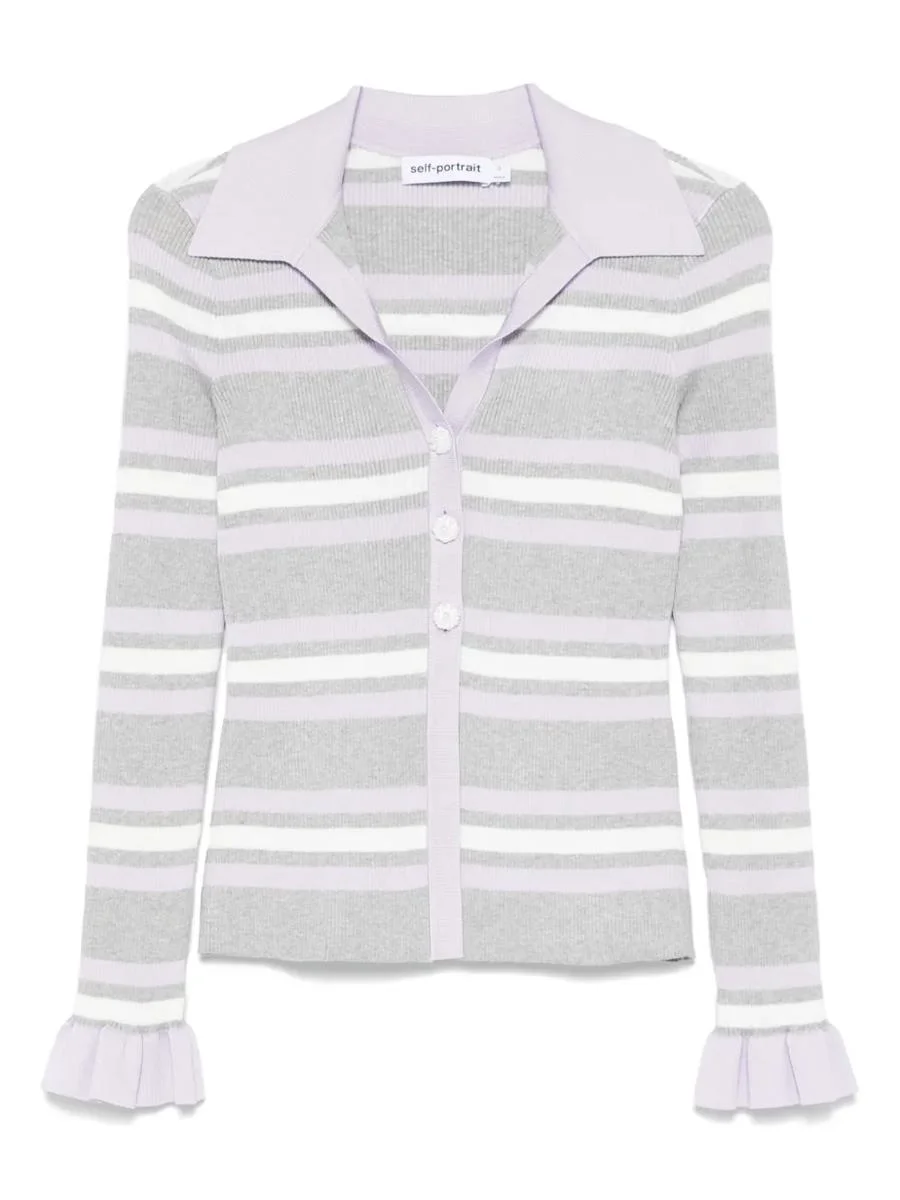 Grey Striped Ribbed Sweater Express your preppy chic style with this striped ribbed cardigan, with its contrast collar and flared sleeves. Wear it with tailored trousers for the office and with minis for a romantic date. True to size The fabric is stretchy Front opening with diamond buttons Flared sleeves ID PF25047TAGR Gender: Women Material: VISCOSE Color: GREY Made in: Imported Product ID: 94080 PF25047TAGR 93089 *Import tax/duty will be calculated at checkout (If applicable)