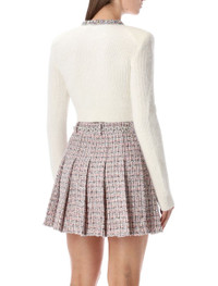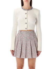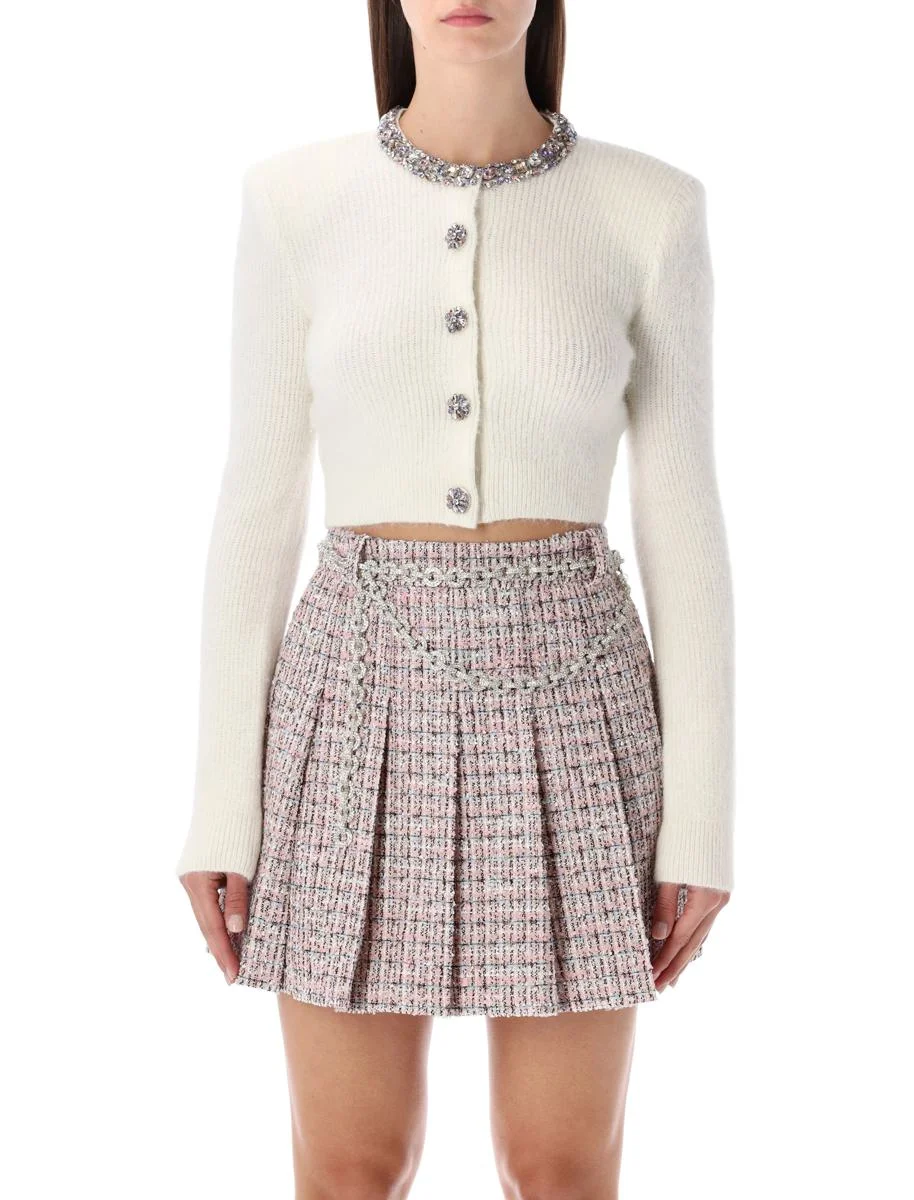 Self-Portrait Ivory Alpaca Cropped Cardigan With Crystal Trims