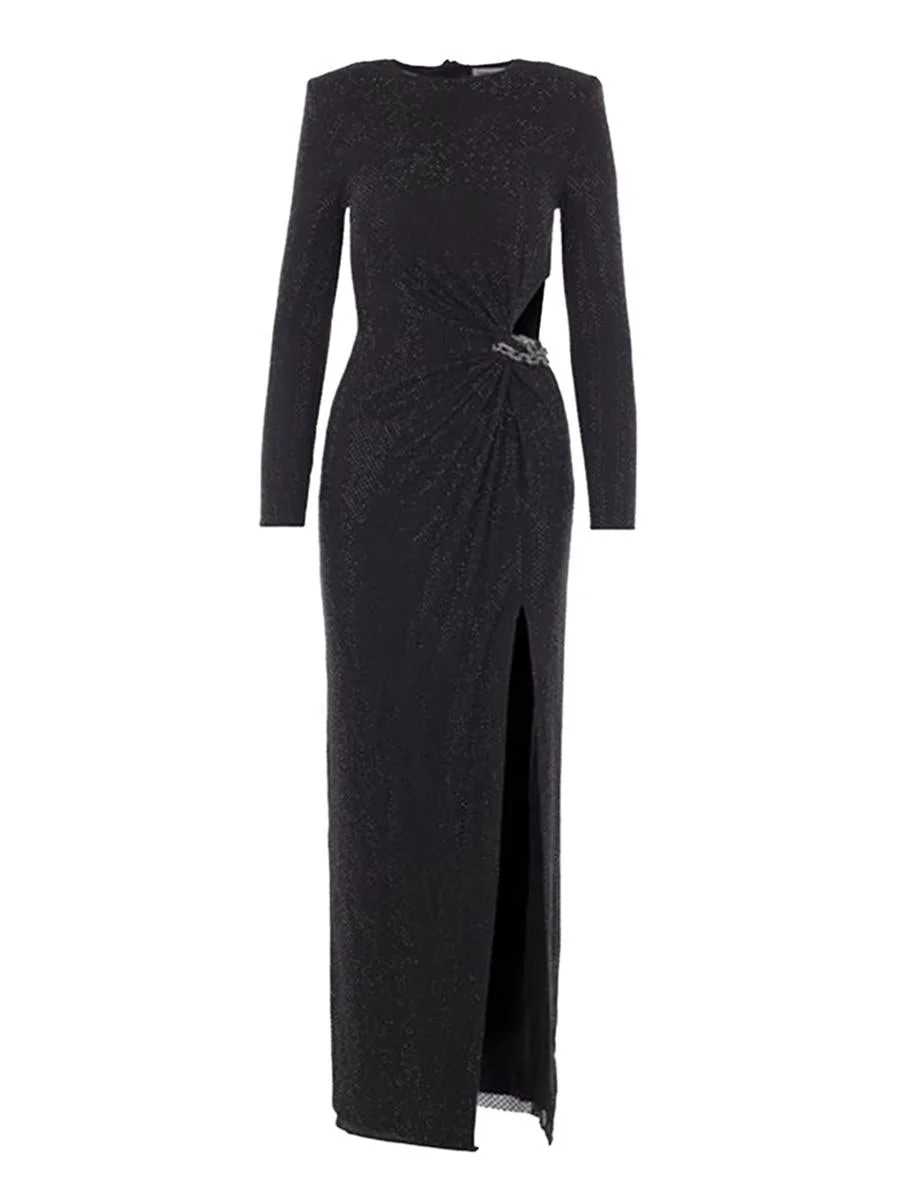Long dress with rhinestones Outer: 100% synthetic crystals, 93% polyester, 7% spandex/elastane Care Instructions Read the manufacturer`s instructions ID SC25004XB Gender: Women Material: POLYESTER Color: Black Made in: Imported Product ID: 96315 SC25004XB 95837 *Import tax/duty will be calculated at checkout (If applicable)