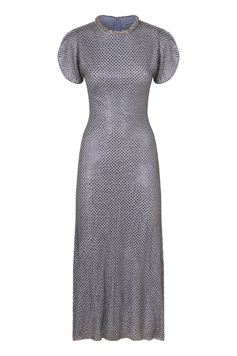 Self-Portrait Midi Dress In Mesh With Rhinestones