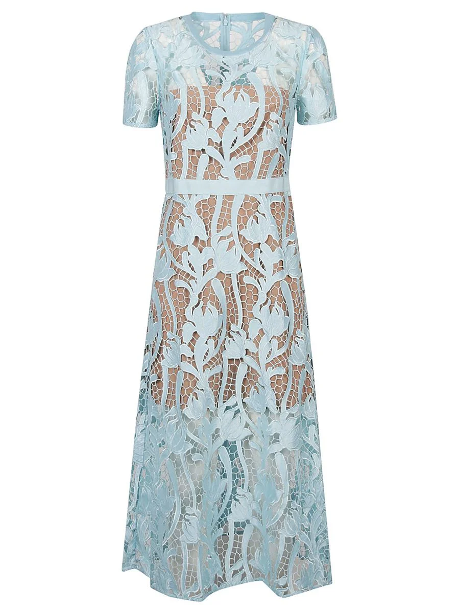 LACE MIDI DRESS Gender: Women Material: 100% POLYESTER Color: BLUE Made in: China Product ID: RS24181MBL *Import tax/duty will be calculated at checkout (If applicable)
