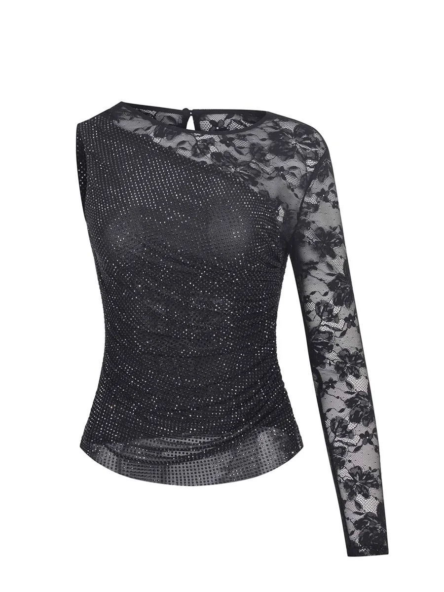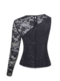 Top Self-Portrait made of black mixed polyester. Completely covered with tone-on-tone rhinestones. Lace inserts. Crew neck. Left long sleeve in lace. Draped on the side. Closure at the back with a button and zip. Lined. Gender: Women Material: POLYESTER Color: Black Made in: Imported Product ID: PF25-100TBLACK *Import tax/duty will be calculated at checkout (If applicable)