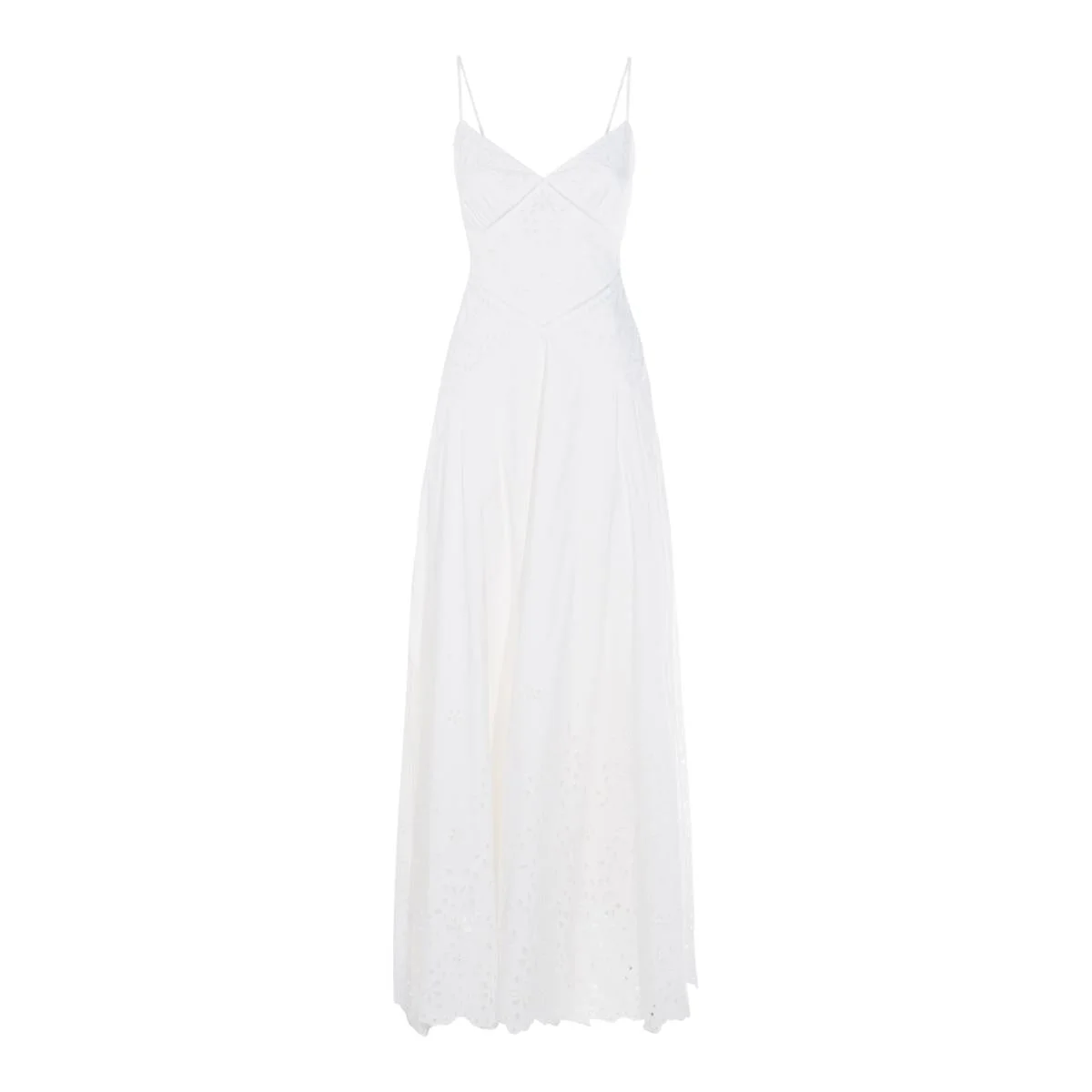 White cotton maxi dress from Self-Portrait featuring v neckline, sleeveless, maxi length and regular vestibility. Size Type: RTW UK WOM Gender: Women Material: 100%COTTON Color: WHITE Made in: Imported Product ID: 127XACCREAM *Import tax/duty will be calculated at checkout (If applicable)