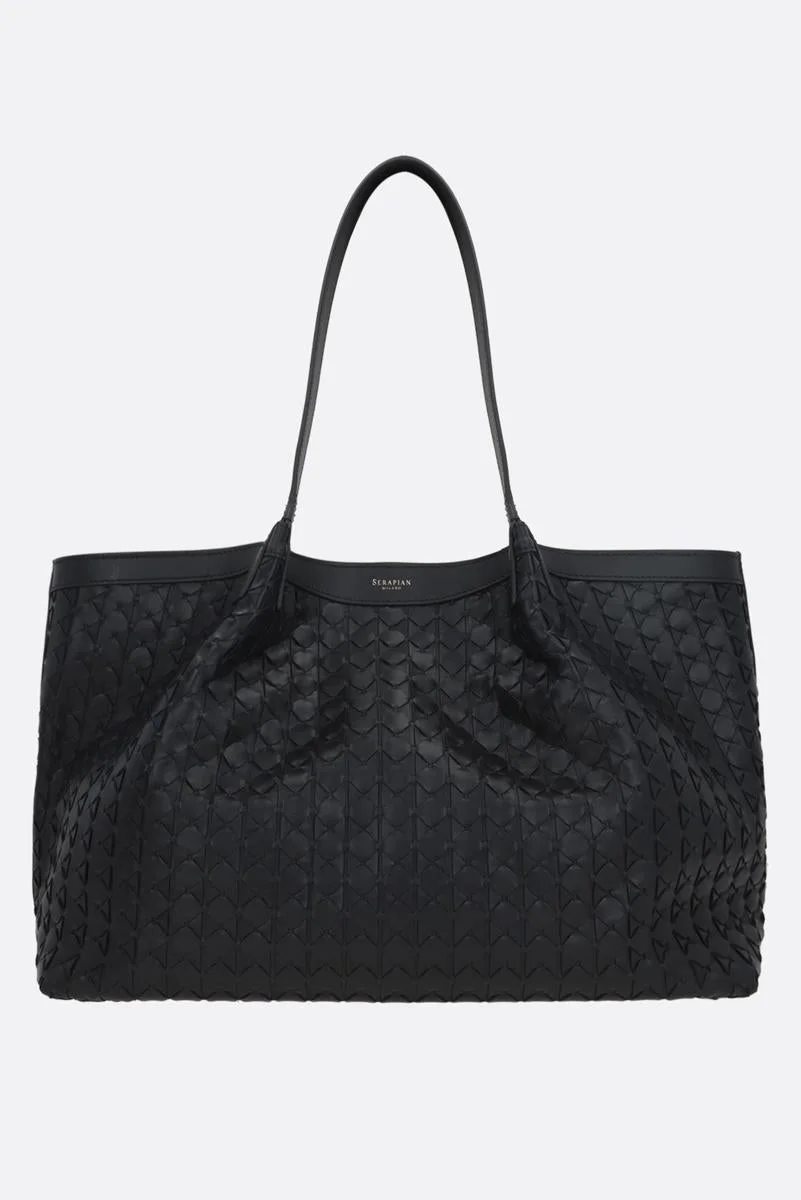Serapian black Small Secret Mosaico shoulder bag, magnetic closure, 2 sections, 2 inner zipped pockets, 2 open pockets, 2 handles, this garment was made with different prints, so the photo has a purely indicative value, 24x37x19 cm Gender: Women Material: 100% CALF LEATHER Color: BLACK Made in: IT Product ID: SRMOSWLL684532A001 *Import tax/duty will be calculated at checkout (If applicable)
