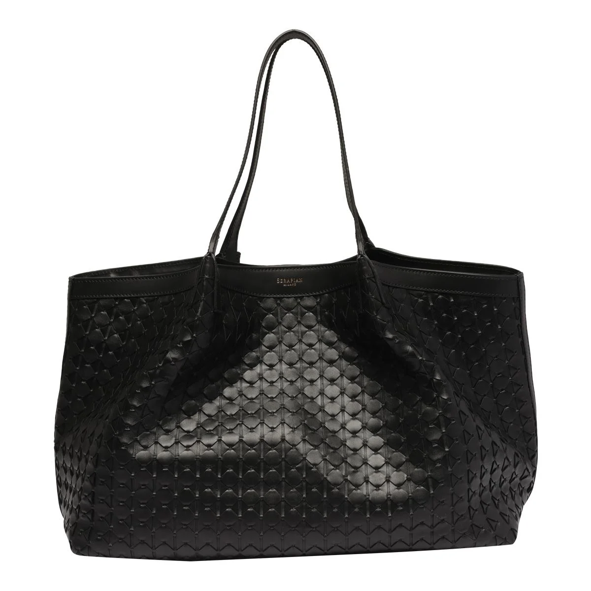 Serapian black Secret Mosaico shoulder bag, magnetic closure, 2 sections, 2 inner zipped pockets, 2 open pockets, 2 handles, 29x46x20 cm Gender: Women Material: 100% CALF LEATHER Color: BLACK Made in: IT Product ID: SRMOSWLL684542B001 *Import tax/duty will be calculated at checkout (If applicable)